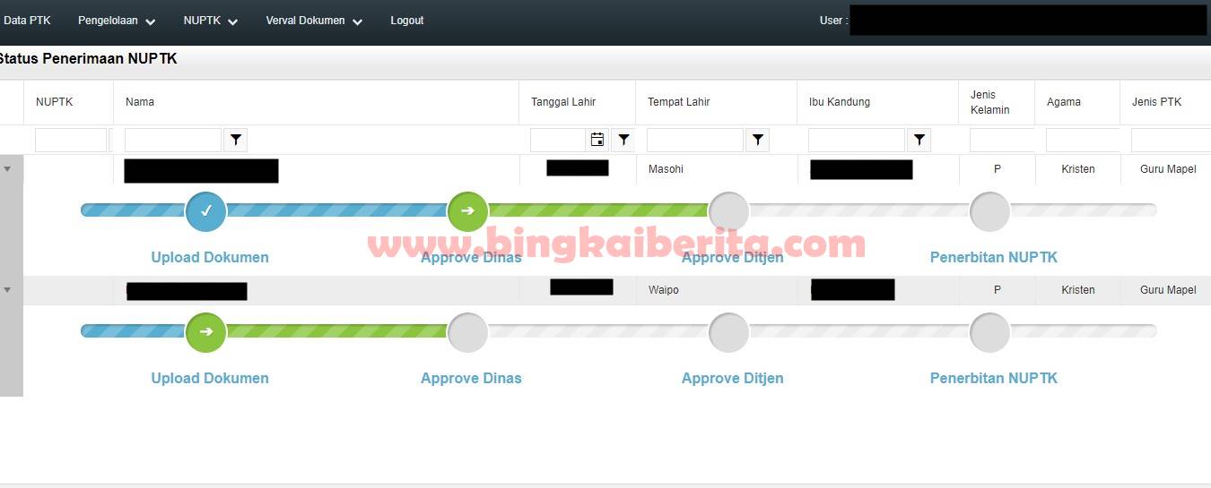 Bingkaiberita.com – Bagi sebagian operator dapodik yang baru pastilah belum mengetahui bagaimana cara daftar nuptk Online Bagi guru PNS maupun NON PNS? Syarat pengajuan NUPTK yang utama adalah seorang guru harus terdaftar di dapodik sekolah. Dan para operator baru saat ini tidak dapat langsung memasukkan guru di dapodik sekolah. Mereka harus meminta pesetujuan oleh admin operaor dapodik dinas pendidikan untuk proses masuk guru di dapodik