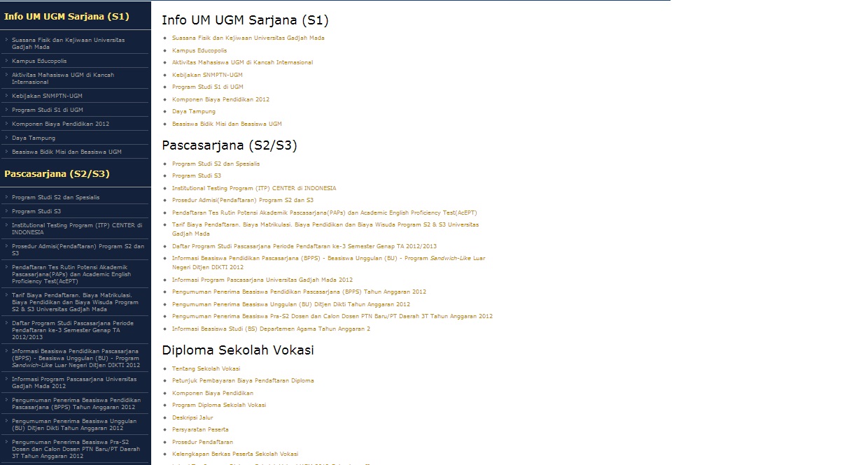 http://um.ugm.ac.id/snmptnugm2012/index.php?pModule=info_um&pSub=info_um&pAct=view anda dapat melihat Display website tersebut seperti dibawah ini: