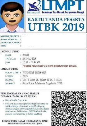 Bagi yang mendaftar silahkan lihat baik baik Jadwal dan Lokasi UTBK dan perlengkapan yang harus dibawa eperti kartu tanda peserta, fotokopi ijazah yang telah dilegalisir atau masih duduk di bangku kelas 12 yang ditanda tangani kepala sekolah, yang berisi terkait dengan nama siswa, NISN siswa, NPSN sekolah.
